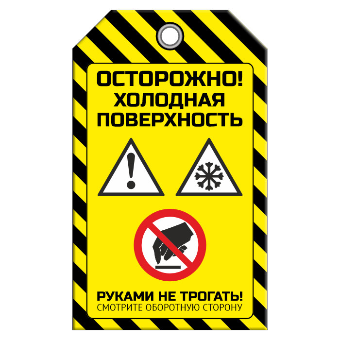 Бирка «ОСТОРОЖНО! ХОЛОДНАЯ ПОВЕРХНОСТЬ» (1 шт., двусторонняя, пластик, 70х115 мм) в Волгограде купить