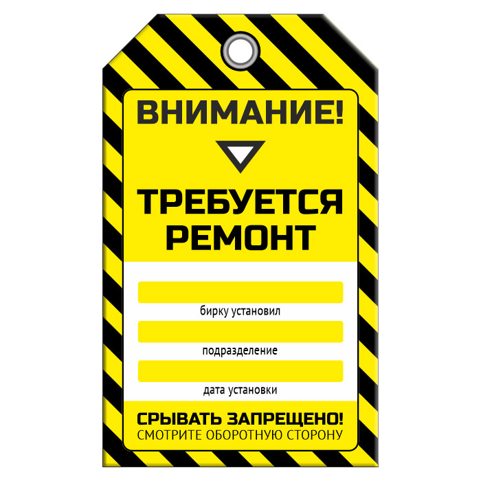 Бирка «ТРЕБУЕТСЯ РЕМОНТ!» (1 шт., двусторонняя, пластик, 70х115 мм) в Волгограде купить