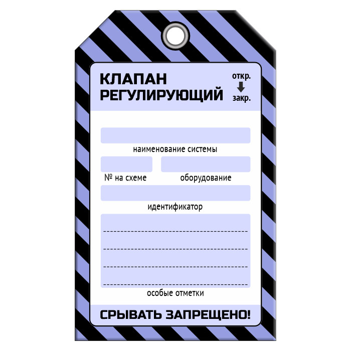 Бирка «КЛАПАН РЕГУЛИРУЮЩИЙ» (1 шт., односторонняя, пластик, 70х115 мм) в Волгограде купить