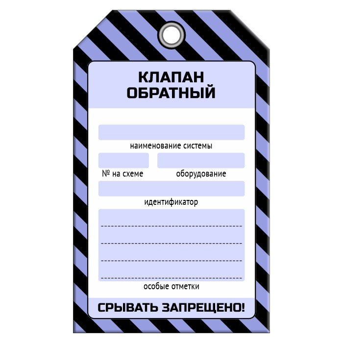 Бирка «КЛАПАН ОБРАТНЫЙ» (1 шт., односторонняя, пластик, 70х115 мм) в Волгограде купить