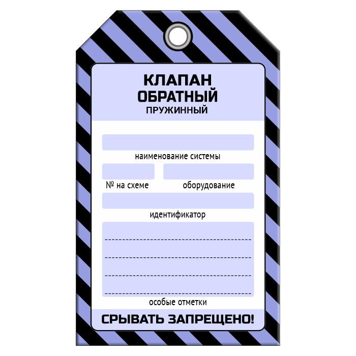 Бирка «КЛАПАН ОБРАТНЫЙ ПРУЖИННЫЙ» (1 шт., односторонняя, пластик, 70х115 мм) в Волгограде купить