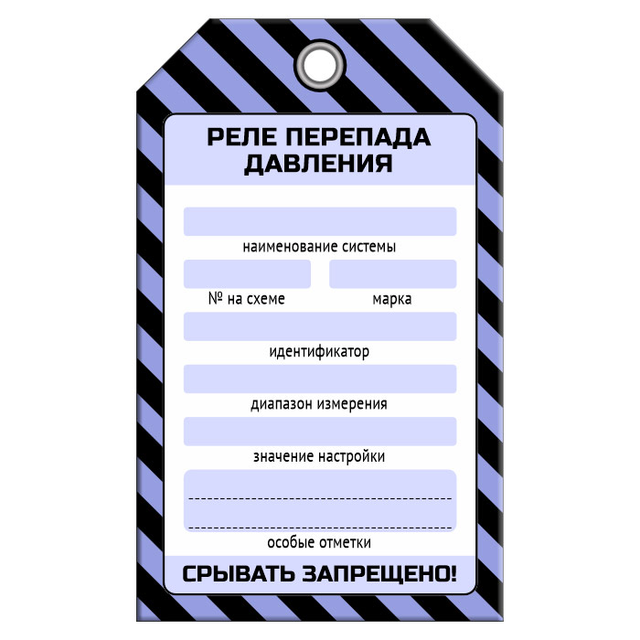 Бирка «РЕЛЕ ПЕРЕПАДА ДАВЛЕНИЯ» (1 шт., односторонняя, пластик, 70х115 мм) в Волгограде купить