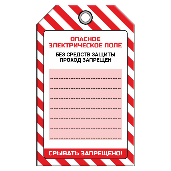 Бирка «ОПАСНОЕ ЭЛЕКТРИЧЕСКОЕ ПОЛЕ» (1 шт., односторонняя, пластик, 70х115 мм) в Волгограде купить
