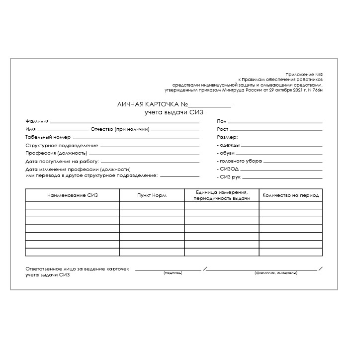 Карточка выдачи СИЗ (приказ Минтруда России от 29 октября 2021 г. №766н, упаковка 100 штук) в Волгограде купить