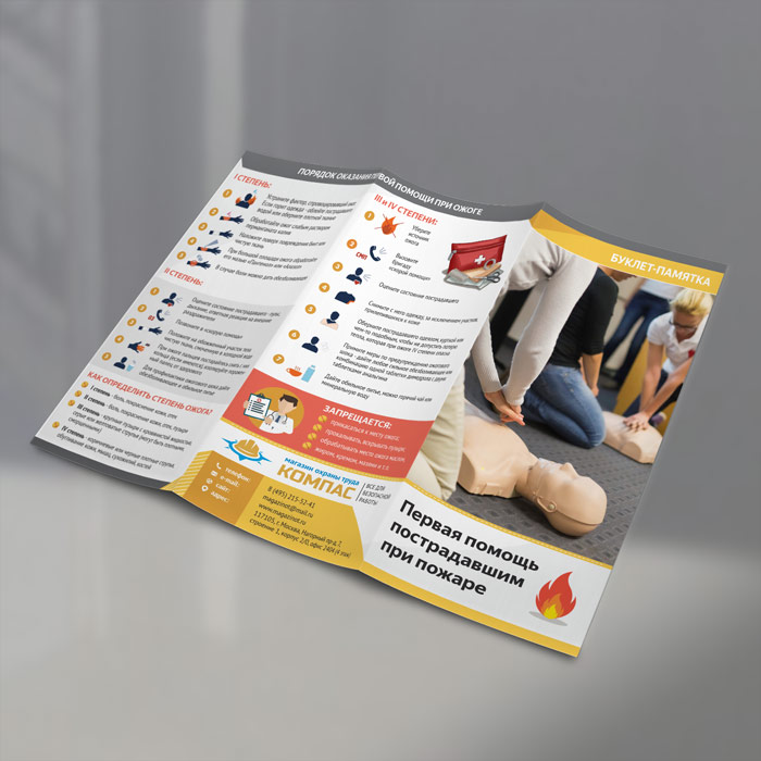 Буклет-памятка «Первая помощь пострадавшим при пожаре» (L-1) в Волгограде купить