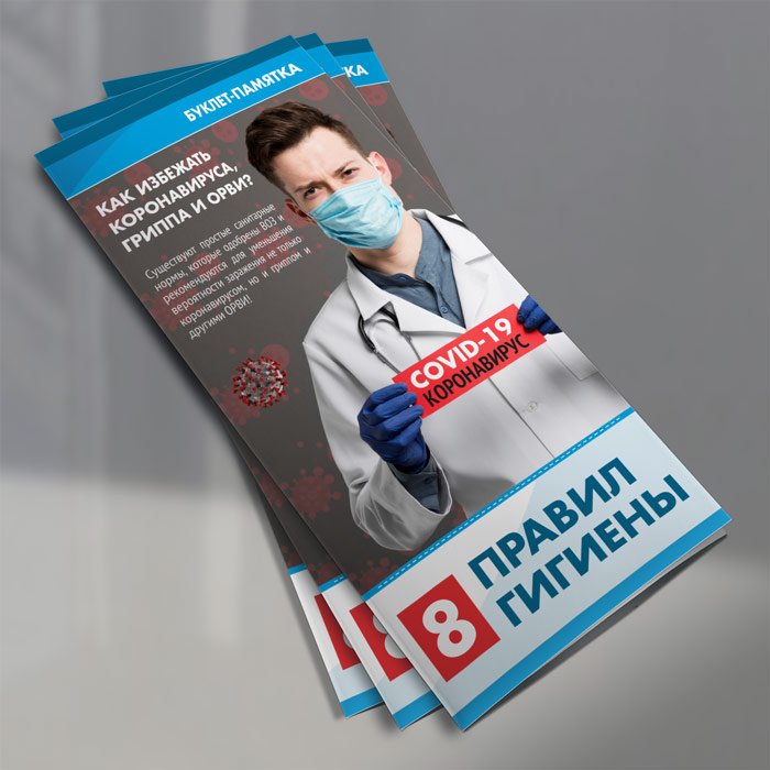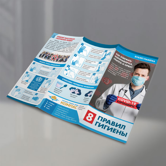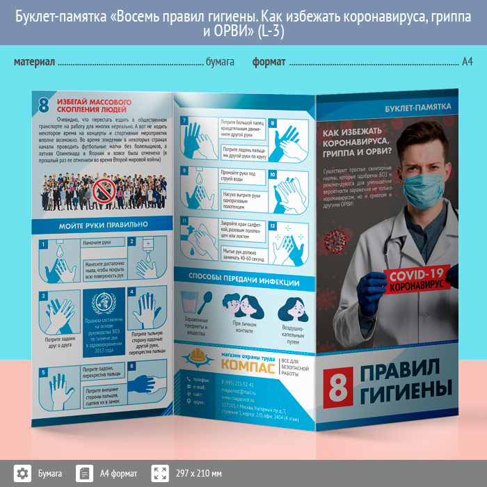 Буклет-памятка «Восемь правил гигиены. Как избежать коронавируса, гриппа и ОРВИ» (L-3) в Волгограде купить