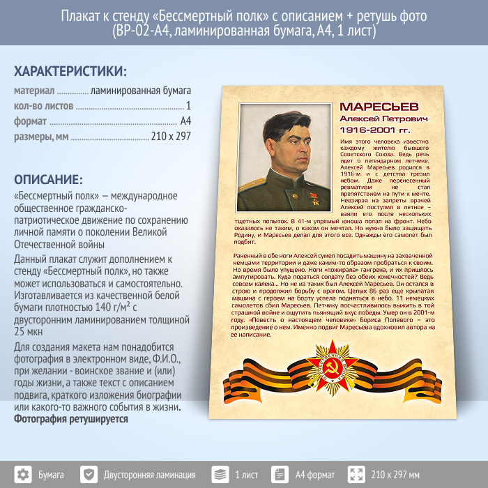 Плакат к стенду «Бессмертный полк» с описанием + ретушь фото (BP-02-A4, ламинированная бумага, А4, 1 лист) в Волгограде купить