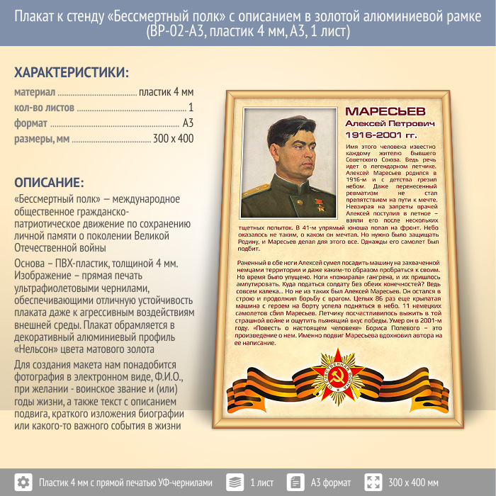Плакат к стенду «Бессмертный полк» с описанием в золотой (матовой) алюминиевой рамке (BP-02-A3, пластик 4 мм, А3, 1 лист) в Волгограде купить