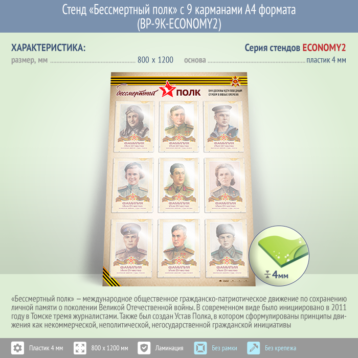 Стенд «Бессмертный полк» с 9 карманами А4 формата (BP-9K-ECONOMY2) в Волгограде купить