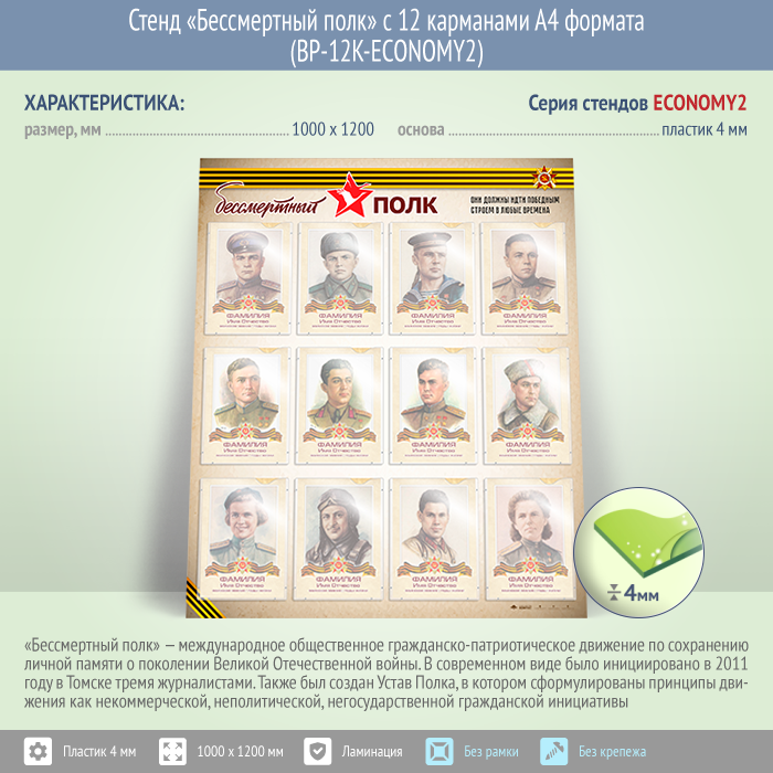 Стенд «Бессмертный полк» с 12 карманами А4 формата (BP-12K-ECONOMY2) в Волгограде купить