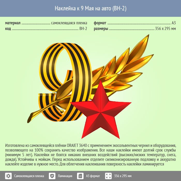 Наклейка к 9 Мая на авто А3 формата (BH-2) в Волгограде купить