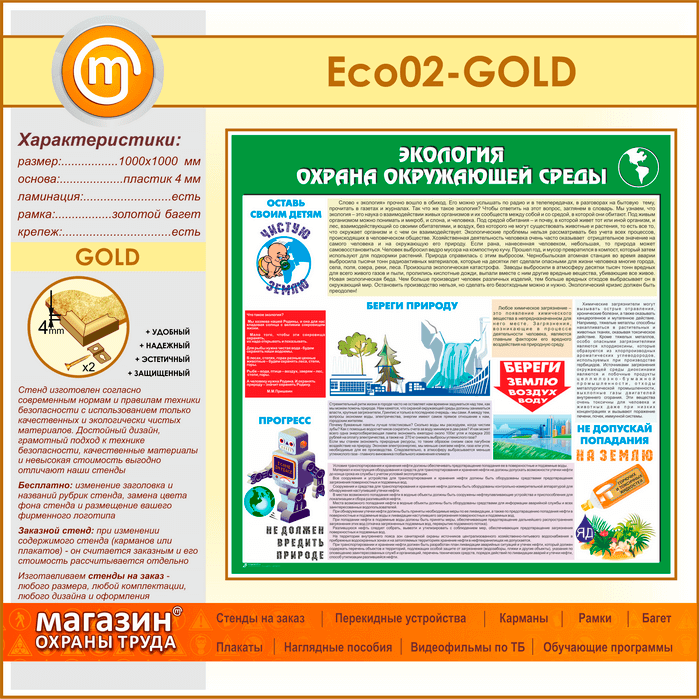 Стенд «Экология - Охрана окружающей среды» (ECO-02-GOLD) в Волгограде купить