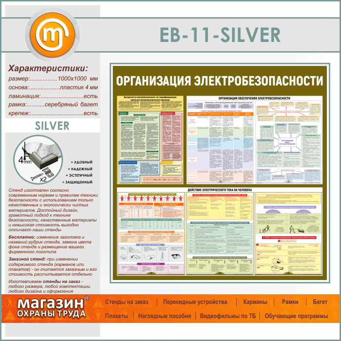 Стенд «Организация электробезопасности» (EB-11-SILVER) в Волгограде купить