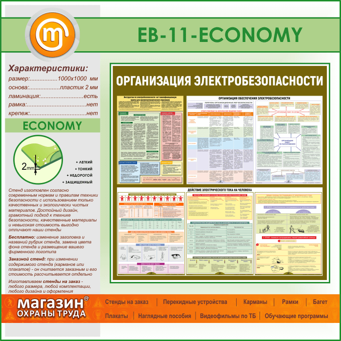 Стенд «Организация электробезопасности» (EB-11-ECONOMY) в Волгограде купить