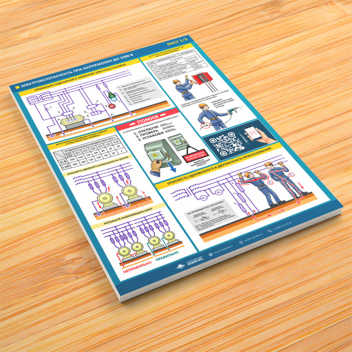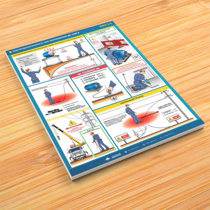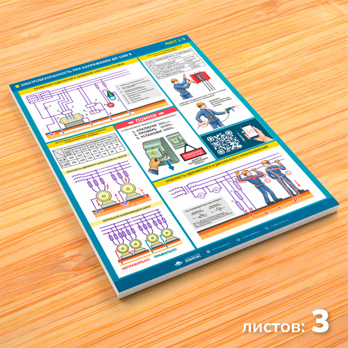 Плакаты «Электробезопасность при напряжении до 1000В» (М-64, ламинированная бумага, А2, 3 листа) в Волгограде купить