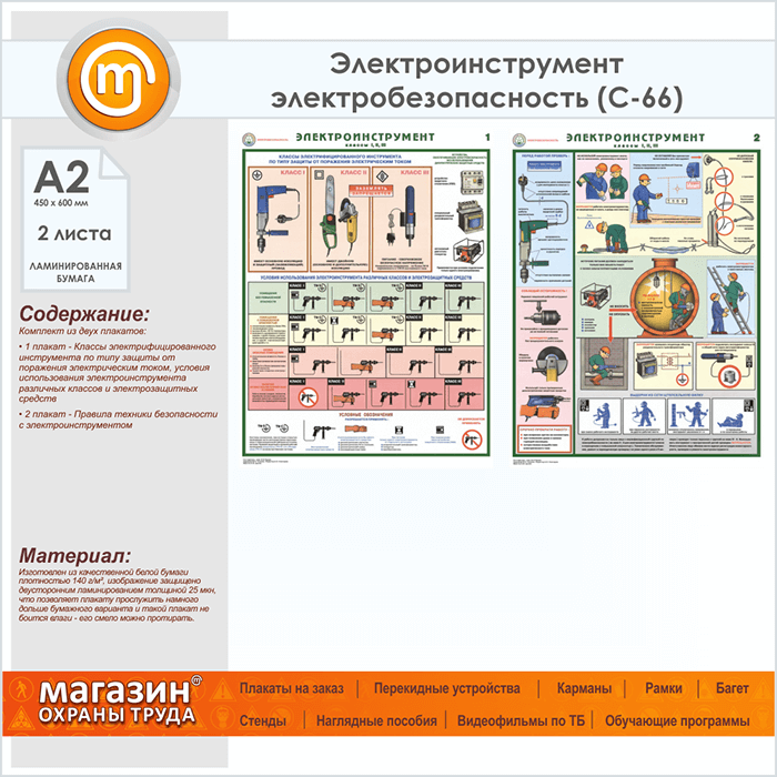 Плакаты «Электроинструмент - электробезопасность» (С-66, ламинированная бумага, А2, 2 листа) в Волгограде купить
