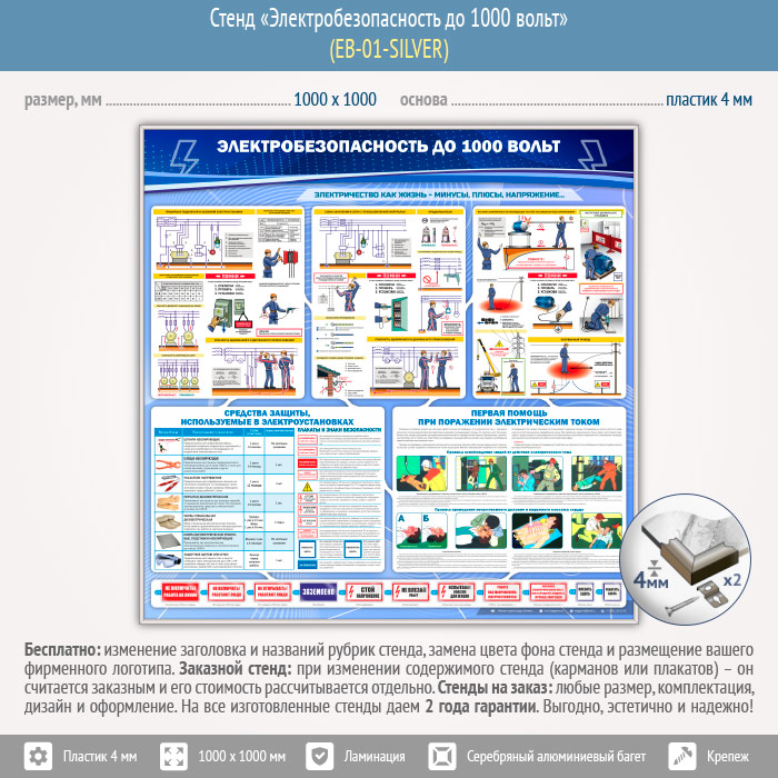 Стенд «Электробезопасность до 1000 вольт» (EB-01-SILVER) в Волгограде купить