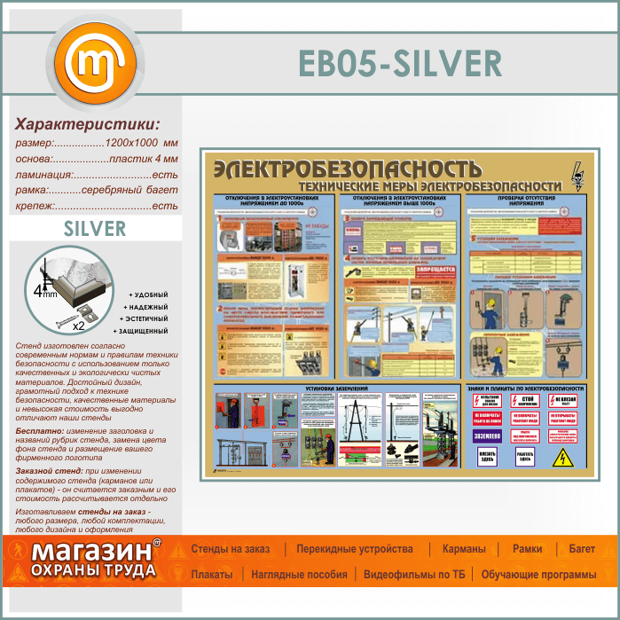 Стенд «Электробезопасность. Технические меры электробезопасности» (EB-05-SILVER) в Волгограде купить