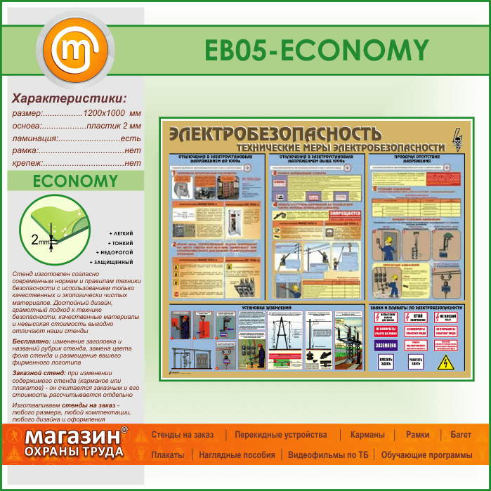 Стенд «Электробезопасность. Технические меры электробезопасности» (EB-05-ECONOMY) в Волгограде купить