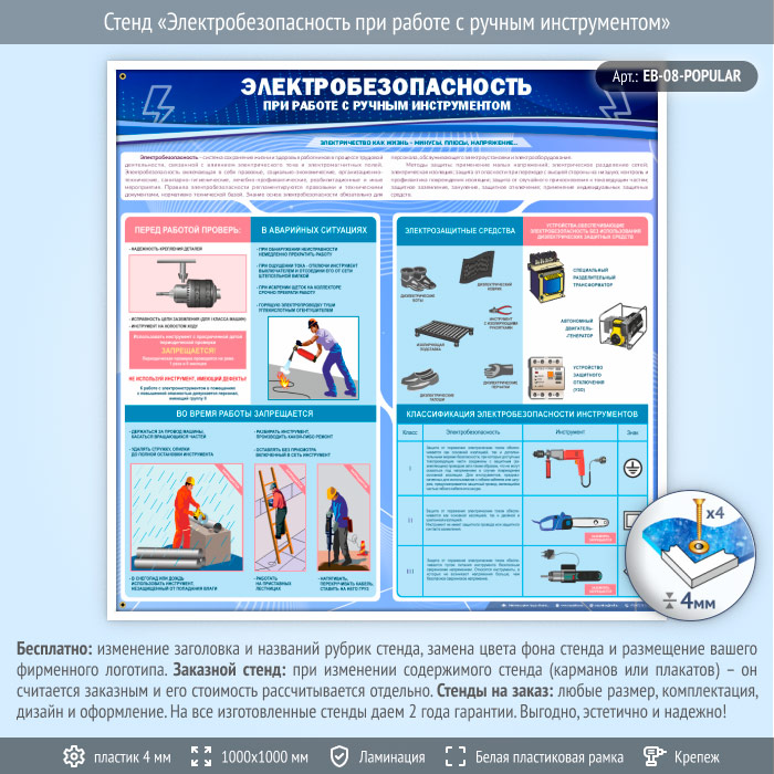 Стенд «Электробезопасность при работе с ручным инструментом» (EB-08-POPULAR) в Волгограде купить