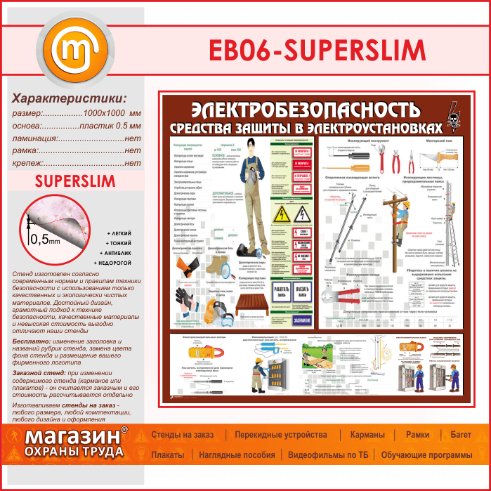 Стенд «Электробезопасность. Средства защиты в электроустановках» (EB-06-SUPERSLIM) в Волгограде купить