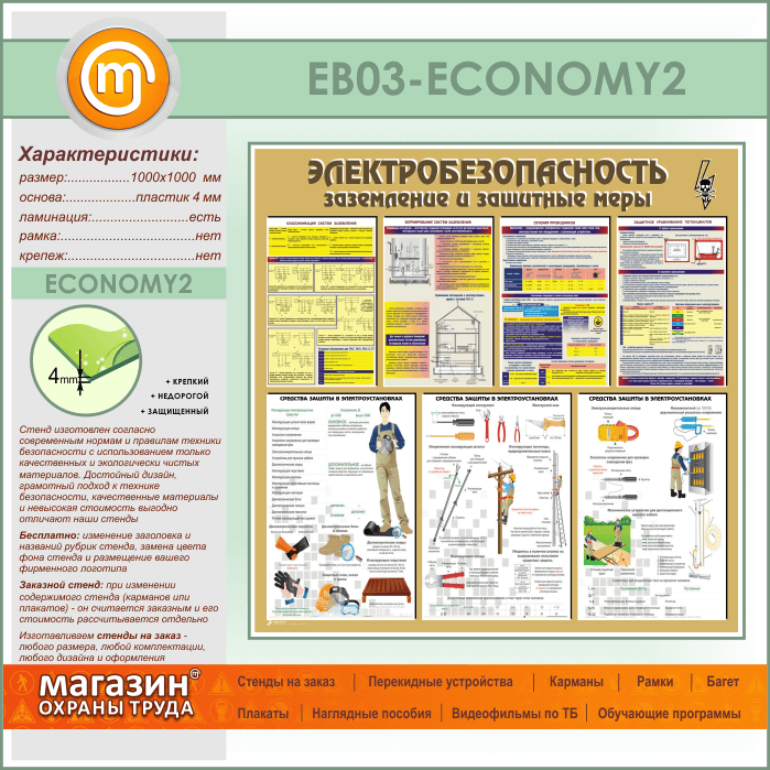 Стенд «Электробезопасность. Заземление и защитные меры» (EB-03-ECONOMY2) в Волгограде купить