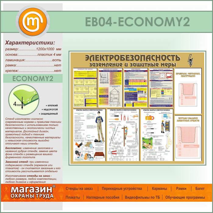 Стенд «Электробезопасность. Заземление и защитные меры» с 2 объемными карманами (EB-04-ECONOMY2) в Волгограде купить