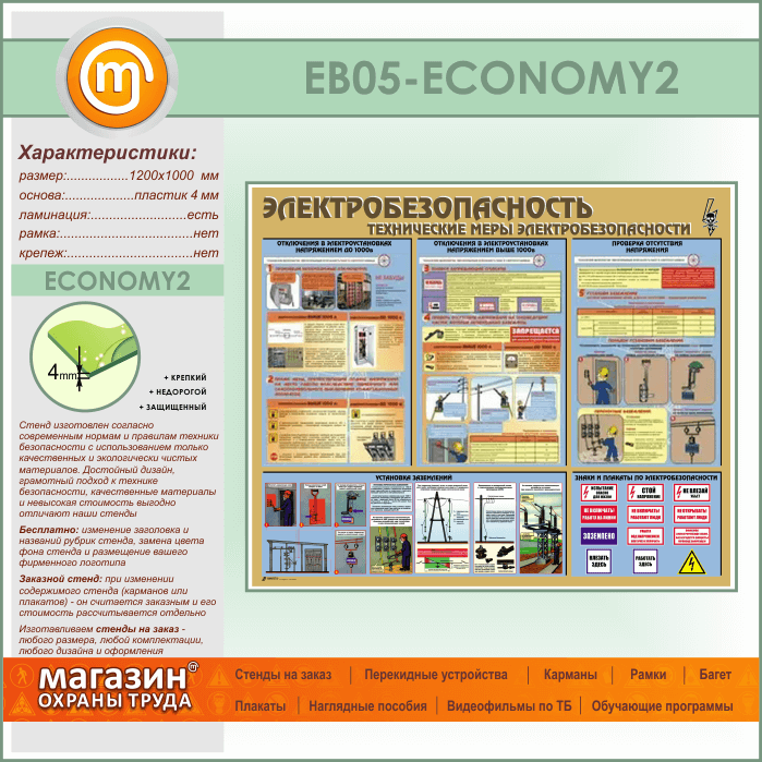 Стенд «Электробезопасность. Технические меры электробезопасности» (EB-05-ECONOMY2) в Волгограде купить