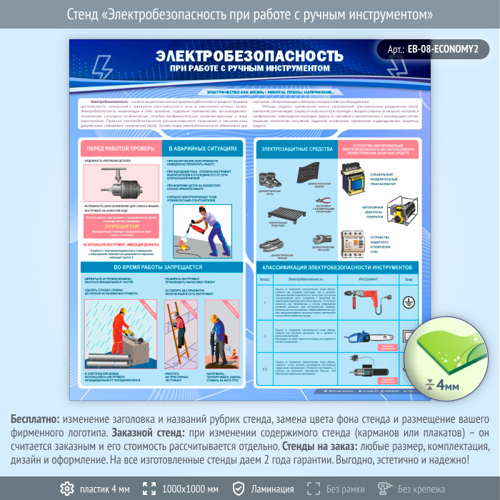 Стенд «Электробезопасность при работе с ручным инструментом» (EB-08-ECONOMY2) в Волгограде купить
