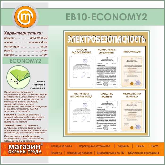 Стенд «Электробезопасность» с 6 карманами (EB-10-ECONOMY2) в Волгограде купить