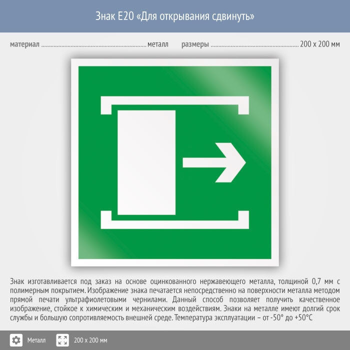 Знак E20 «Для открывания сдвинуть» (металл, 200х200 мм) в Волгограде купить