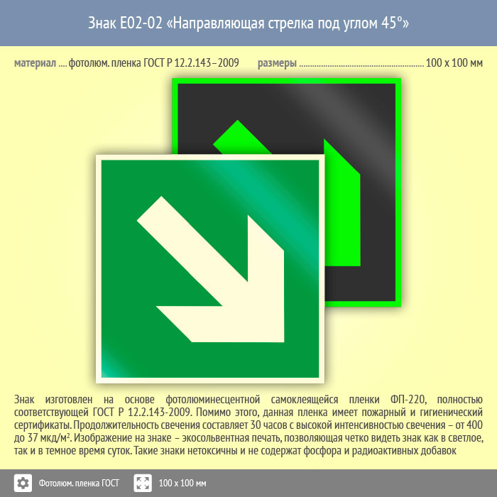 Знак E02-02 «Направляющая стрелка под углом 45°» (фотолюминесцентная пленка ГОСТ 34428-2018, 100х100 мм) в Волгограде купить