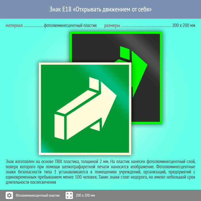 Знак E18 «Открывать движением от себя» (фотолюминесцентный пластик, 200х200 мм) в Волгограде купить