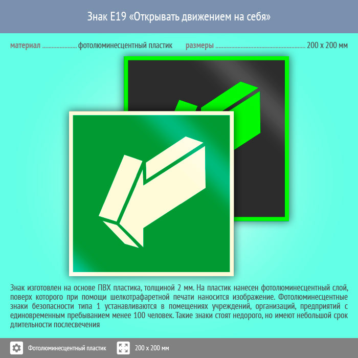 Знак E19 «Открывать движением на себя» (фотолюминесцентный пластик, 200х200 мм) в Волгограде купить