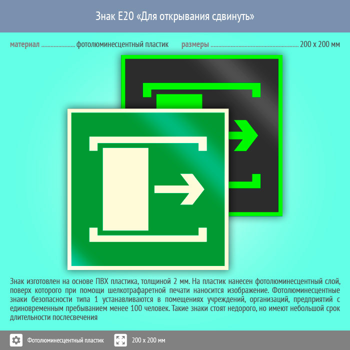 Знак E20 «Для открывания сдвинуть» (фотолюминесцентный пластик, 200х200 мм) в Волгограде купить