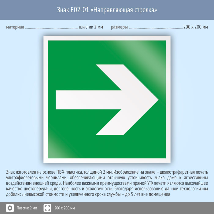 Знак E02-01 «Направляющая стрелка» (пластик, 200х200 мм) в Волгограде купить