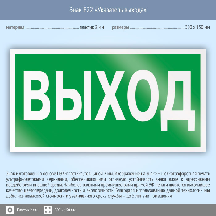 Знак E22 «Указатель выхода» (пластик, 300х150 мм) в Волгограде купить