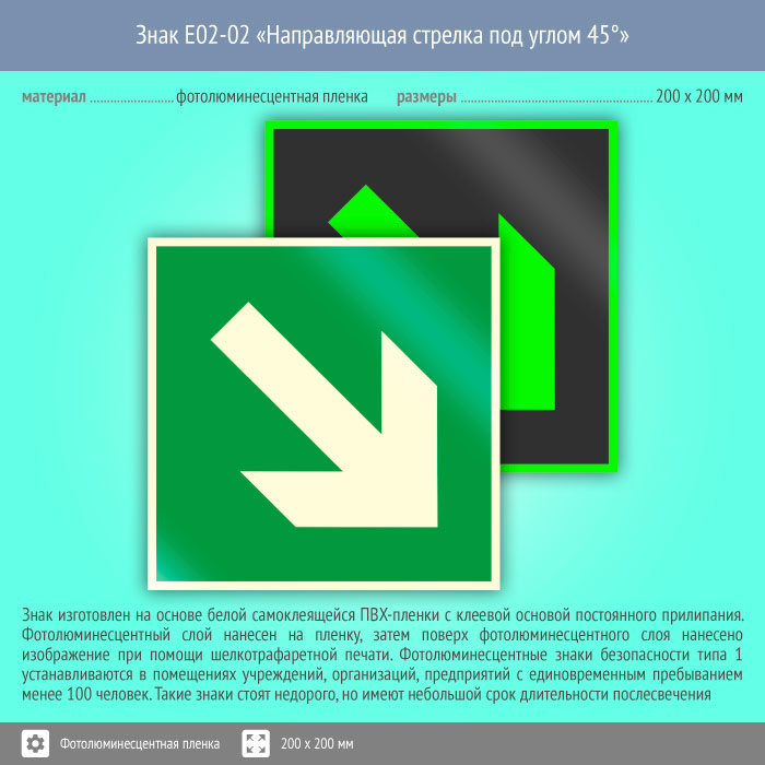 Знак E02-02 «Направляющая стрелка под углом 45°» (фотолюминесцентная пленка, 200х200 мм) в Волгограде купить