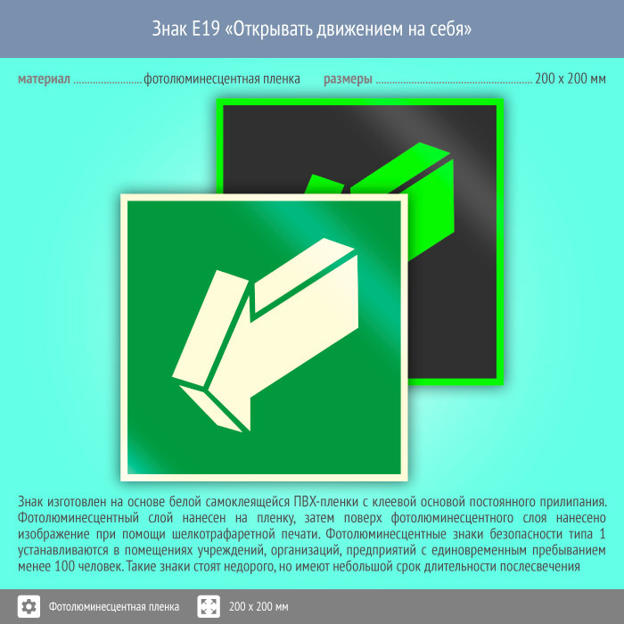 Знак E19 «Открывать движением на себя» (фотолюминесцентная пленка, 200х200 мм) в Волгограде купить