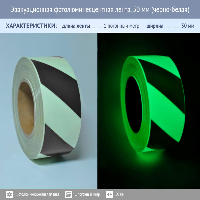 Эвакуационная фотолюминесцентная лента, 50 мм (черно-белая) в Волгограде купить