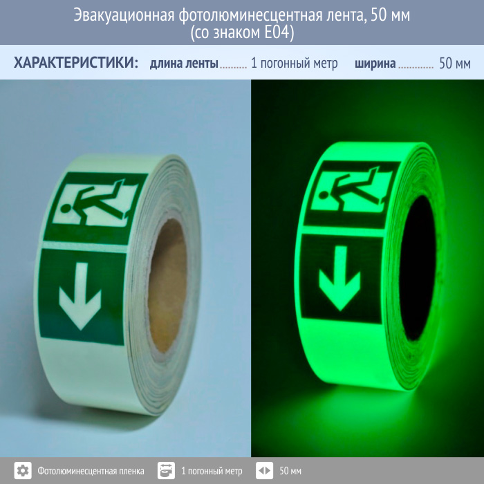 Эвакуационная фотолюминесцентная лента, 50 мм (со знаком E04) в Волгограде купить