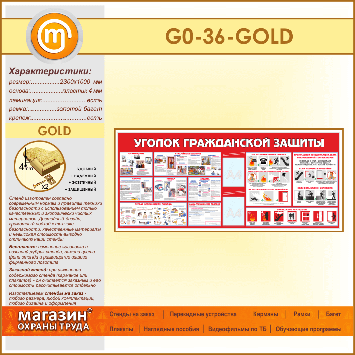 Стенд «Уголок гражданской защиты» c 2 карманами (GO-36-GOLD) в Волгограде купить