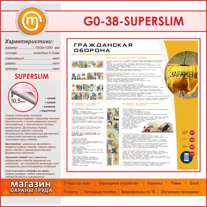 Стенд «Гражданская оборона» (GO-38-SUPERSLIM) в Волгограде купить