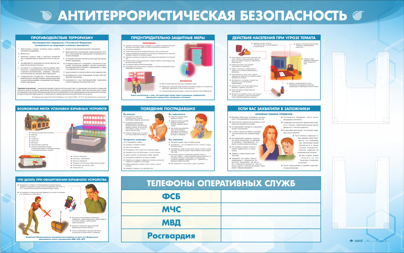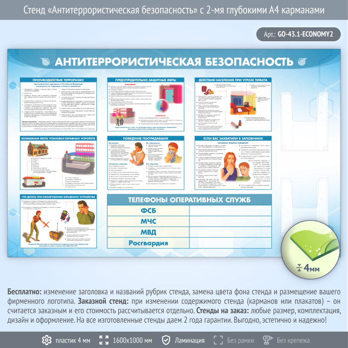 Стенд «Антитеррористическая безопасность» с 2-мя глубокими А4 карманами (GO-43.1-ECONOMY2) в Волгограде купить