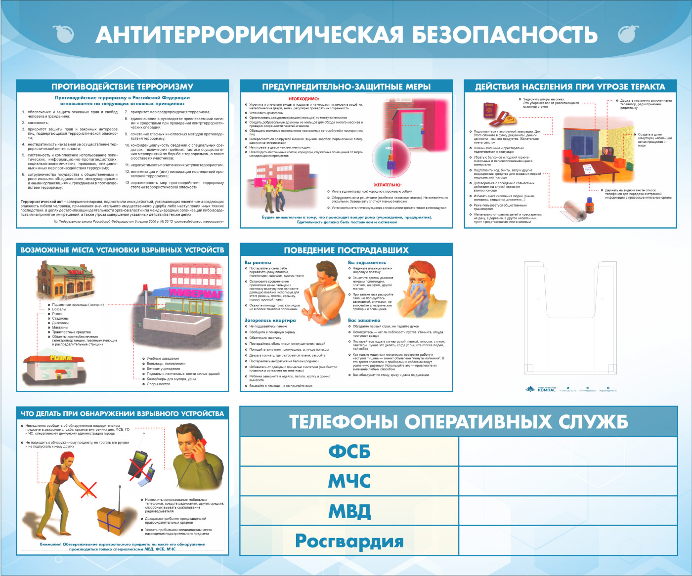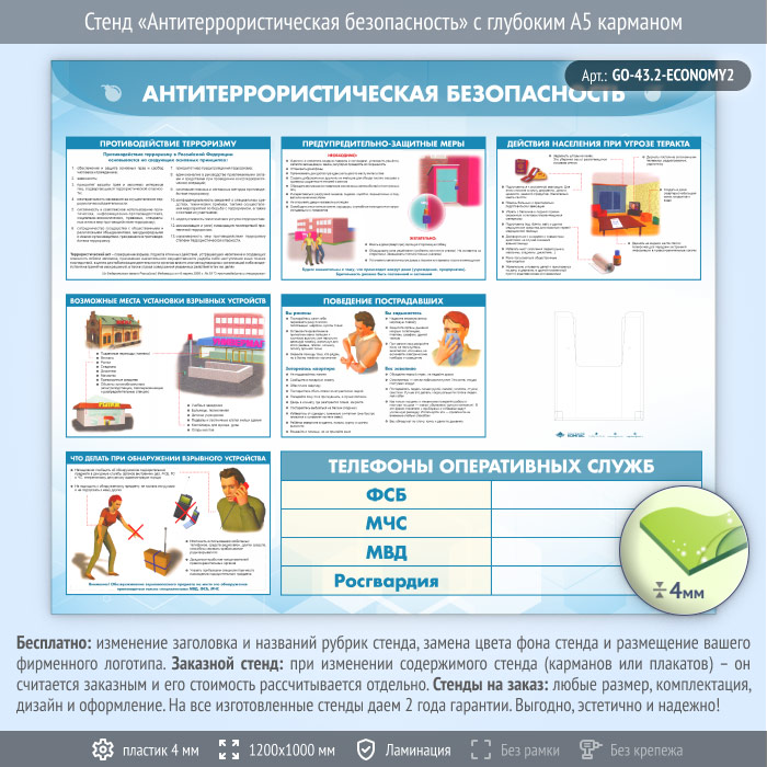 Стенд «Антитеррористическая безопасность» с глубоким А5 карманом (GO-43.2-ECONOMY2) в Волгограде купить