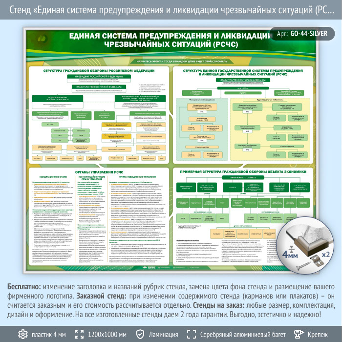 Стенд «Единая система предупреждения и ликвидации чрезвычайных ситуаций (РСЧС)» (GO-44-SILVER) в Волгограде купить