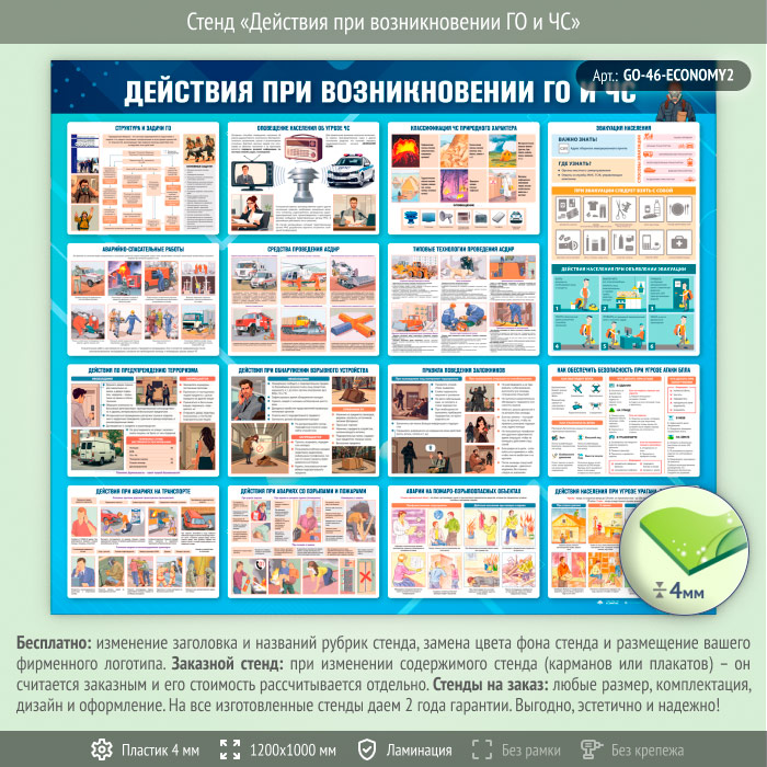 Стенд «Действия при возникновении ГО и ЧС» (GO-46-ECONOMY2) в Волгограде купить