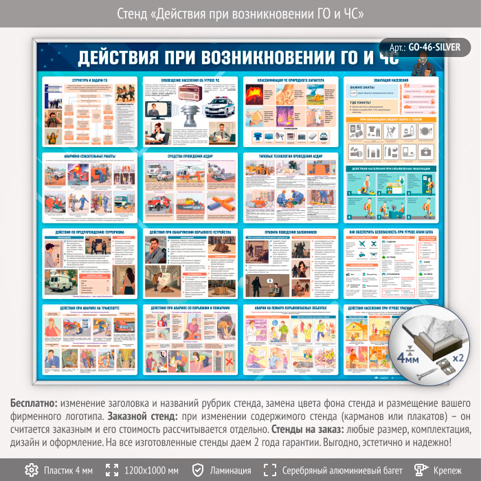 Стенд «Действия при возникновении ГО и ЧС» (GO-46-SILVER) в Волгограде купить