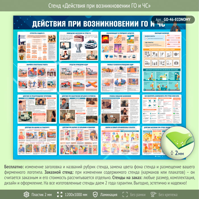 Стенд «Действия при возникновении ГО и ЧС» (GO-46-ECONOMY) в Волгограде купить