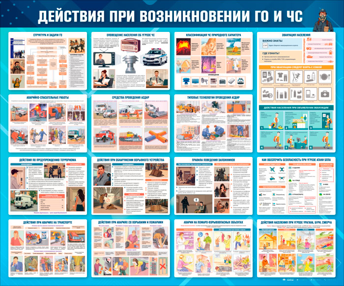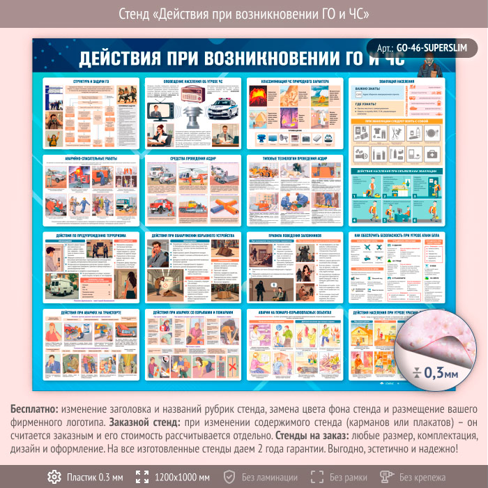 Стенд «Действия при возникновении ГО и ЧС» (GO-46-SUPERSLIM) в Волгограде купить